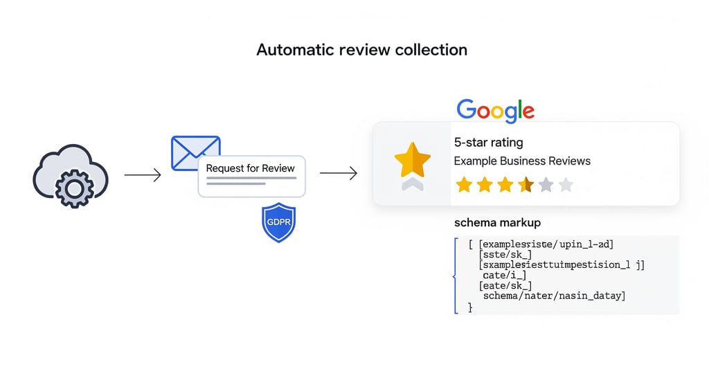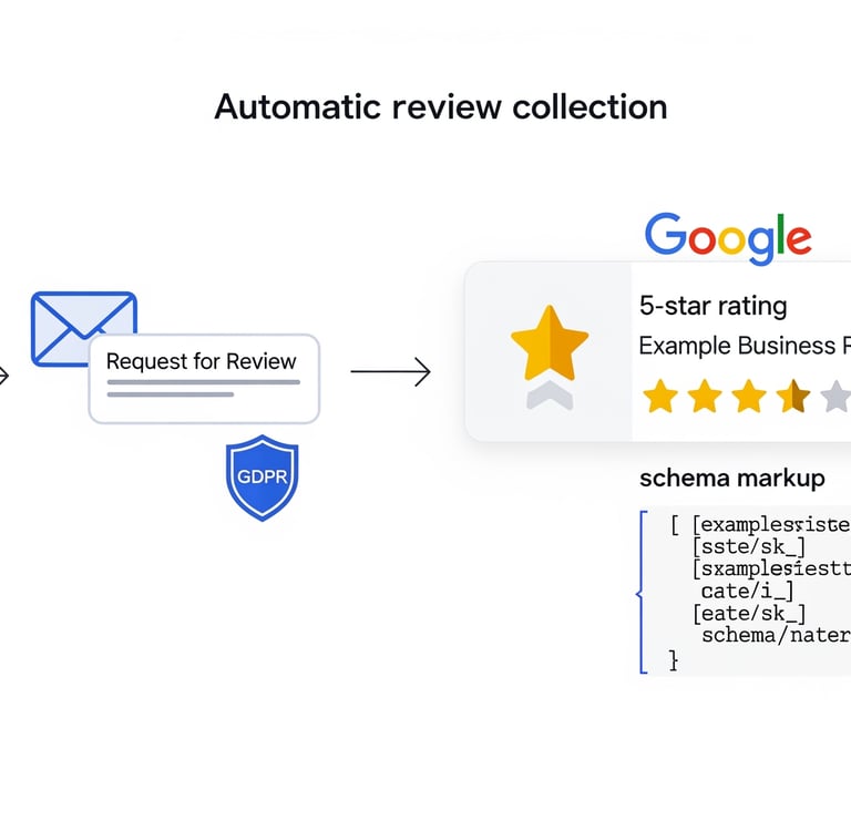 Automatiser la collecte d’avis (RGPD) + étoiles dans Google (schema)