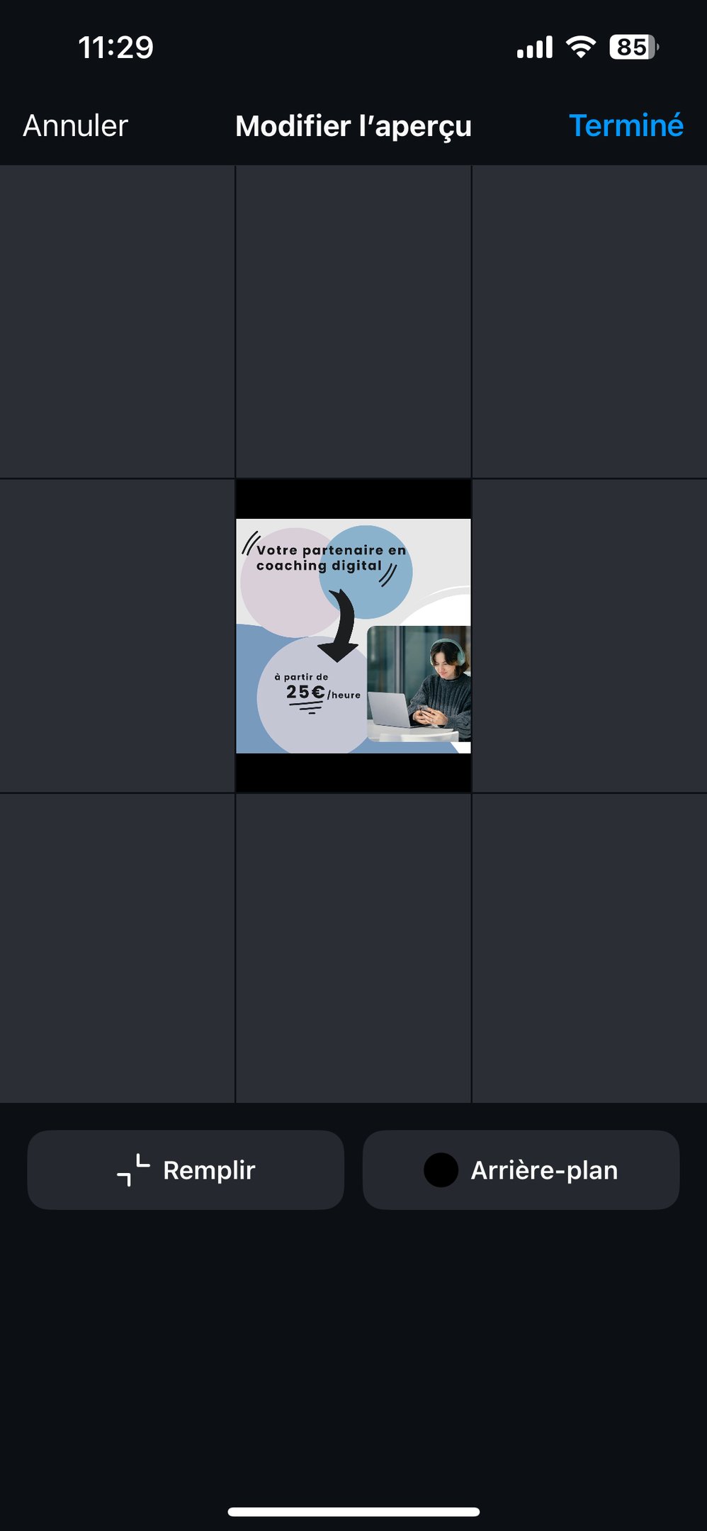 Recadrez vos visuels : Utilisez l’option “Ajuster l’aperçu” d’Instagram pour adapter vos anciennes publications.